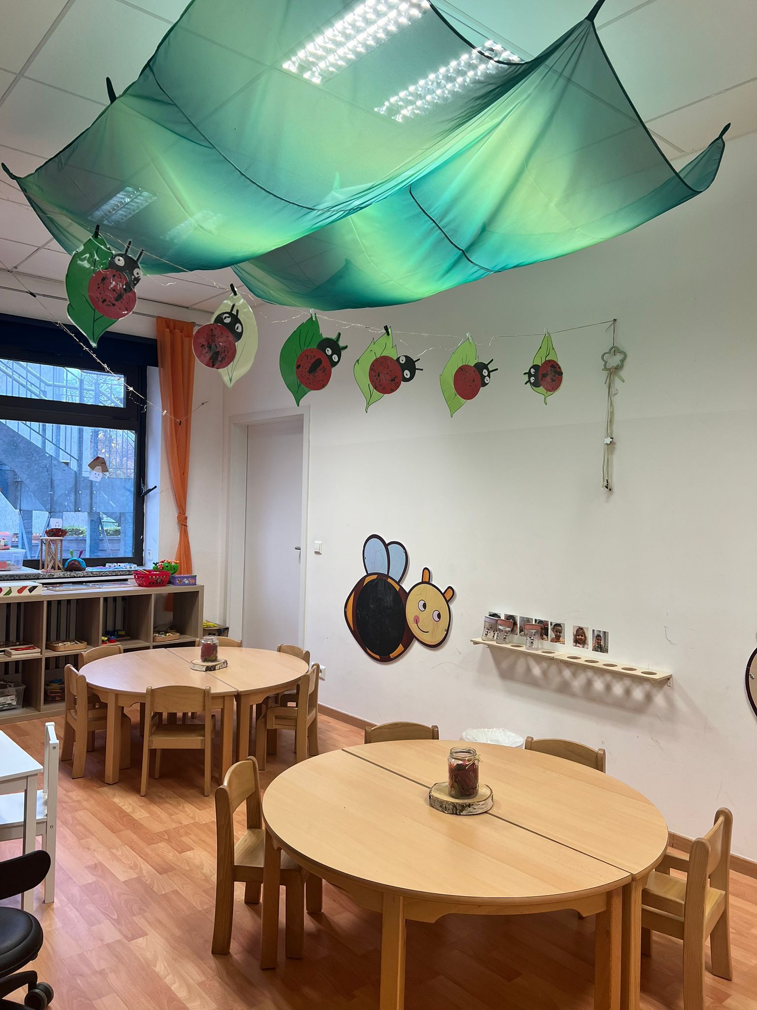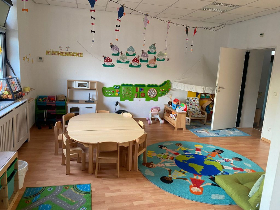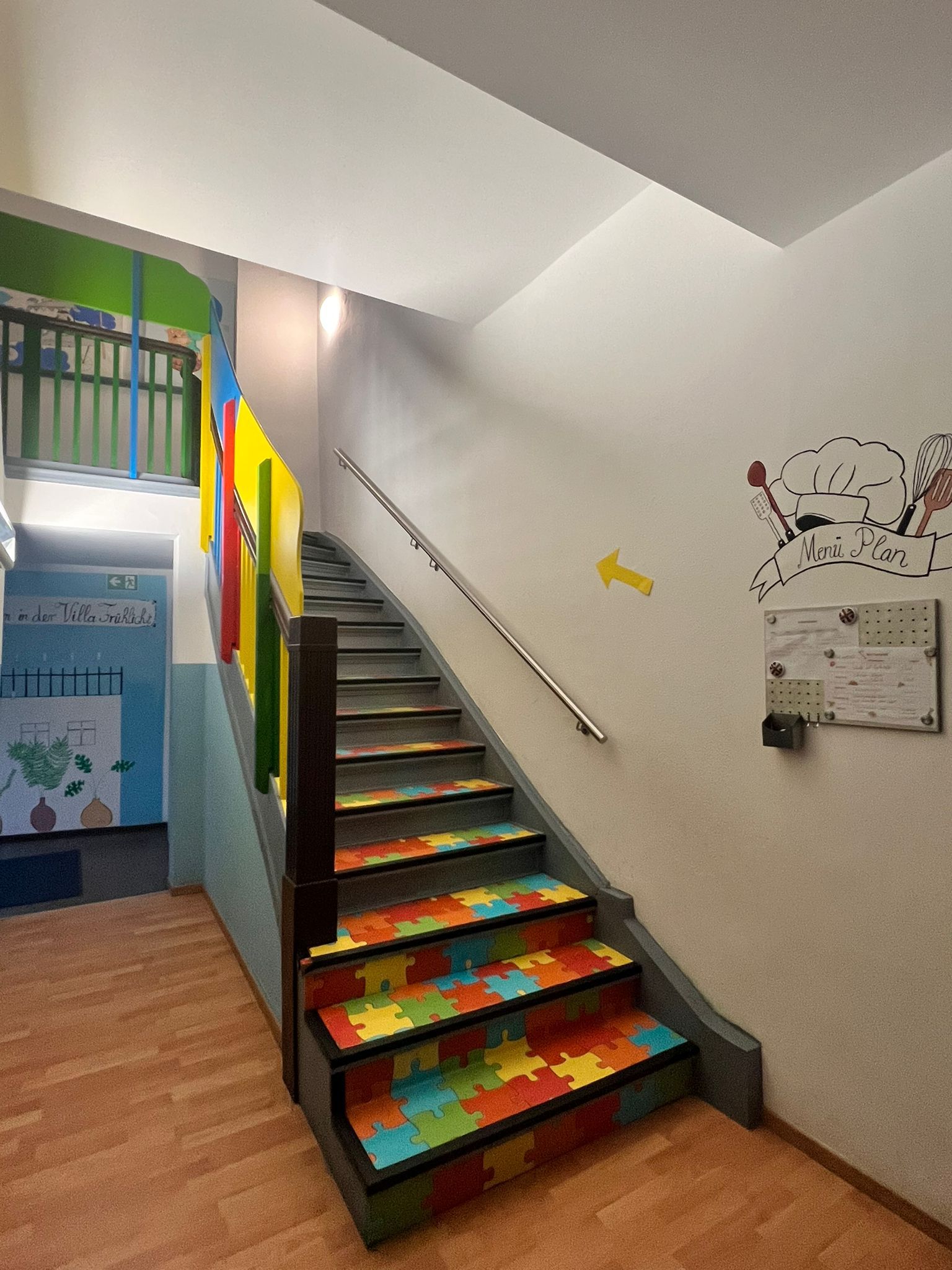 Damit haben wir in unserer Kita zwei Krippen- und zwei Elementargruppen, die eine individuelle Betreuung und Förderung je nach Alter ermöglichen. Die Gruppen „Zwerge“, „Elfen“ und „Drachen“ nutzen das Erdgeschoss, während die „Riesen“ die obere Etage ganz für sich haben.